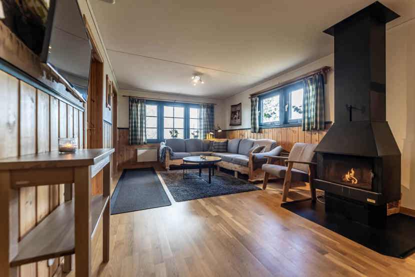 Opholdsstue med køkkenafdeling. TV, brændeovn (brænde indgår ikke), tørreskab, rum til skiudstyr, altan (skovles ikke), 1 parkeringsplads.
