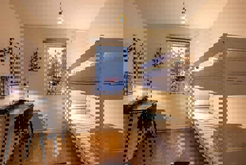 Soveværelse-1= 1 dobbeltseng 180 cm bred. Soveværelse-2= 1 køjeseng hvor både over og underkøje er 90 cm bred.