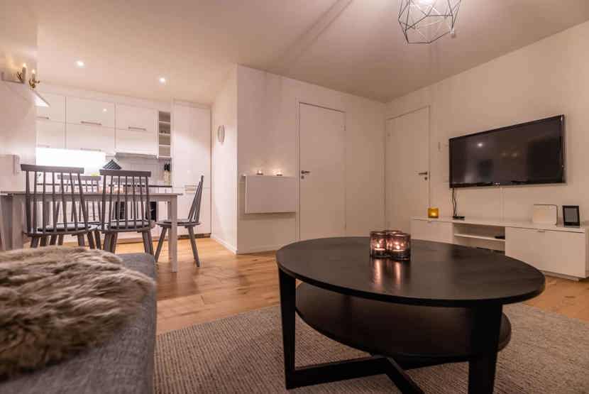 TV, tørreskab, kombineret vaskemaskine/tørretumbler, rum til skiudstyr, 1 parkeringsplads.