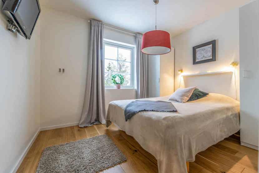 Soveværelse-1= 1 dobbeltseng. Soveværelse-2= 1 køjeseng, 1 køyeseng med 120 cm bred underkøye og 90 cm bred overkøye.