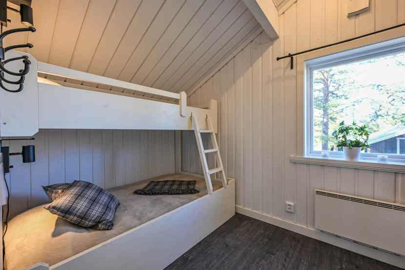 Soveværelse-1= 1 dobbeltseng 160 cm bred. Soveværelse-2= 1 køyeseng med 120 cm bred underkøye og 90 cm bred overkøye.