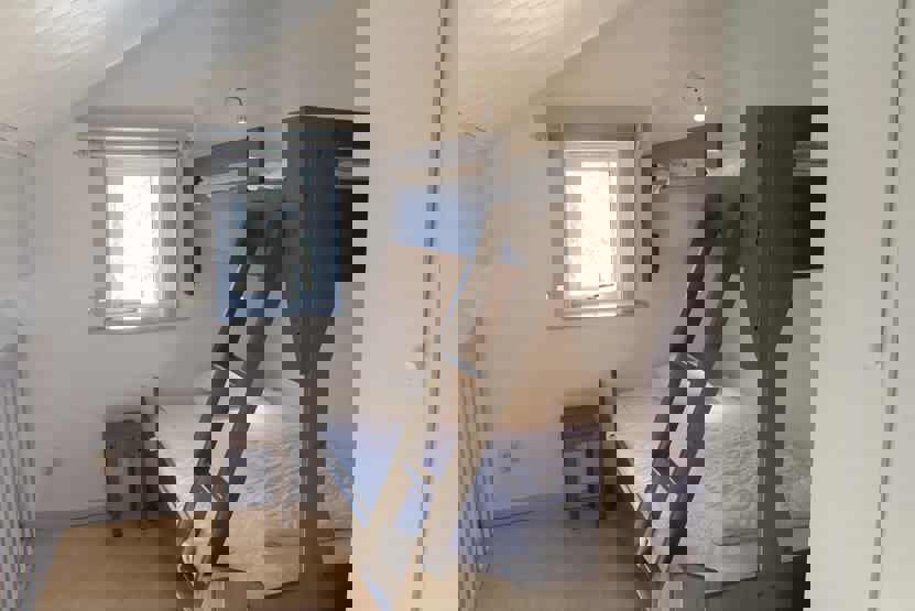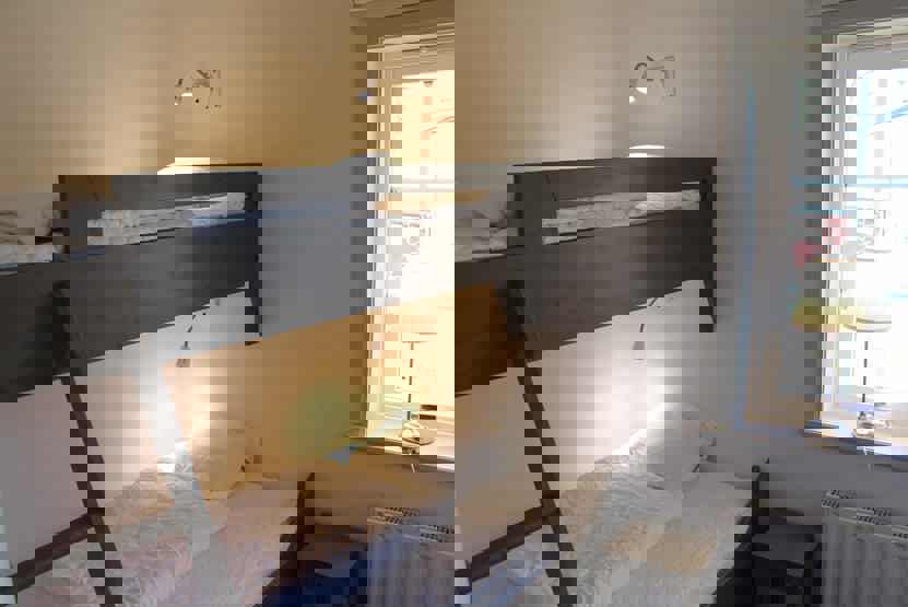 Soveværelse-1= 1 køjeseng. Hems 1= 2 køjesenge med 120 cm bred underkøje .