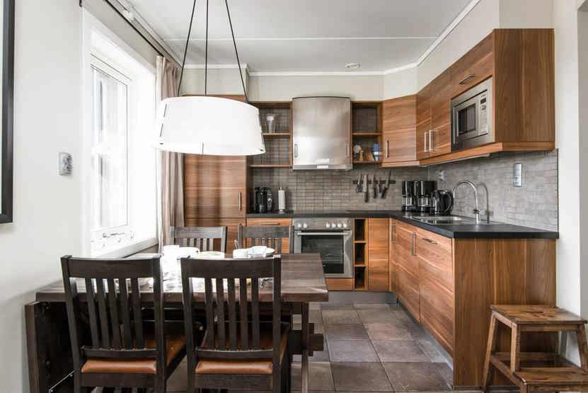 Køkkenet indeholder: keramiske kogeplader med ovn, køleskab, frys, opvaskemaskine, microovn.