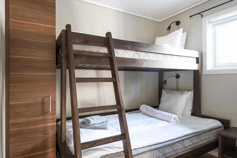 Soveværelse-1= 1 dobbeltseng. Soveværelse-2= 1 køjeseng med 120 cm bred underkøje .