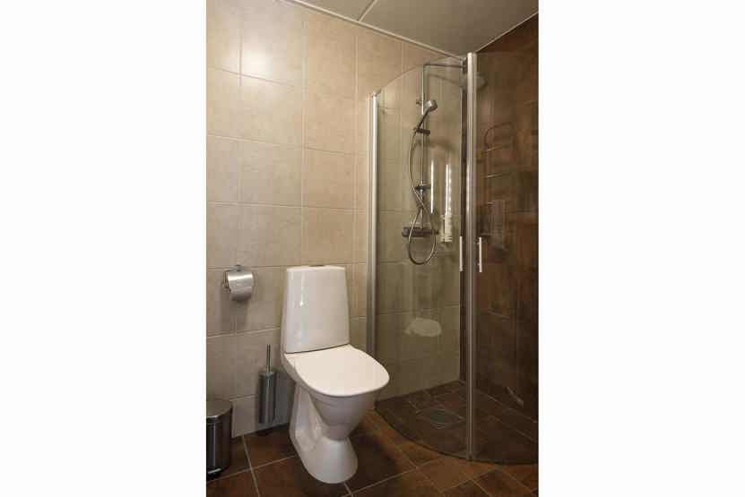 Badeværelset-1 = bruse/wc/håndklædetørrer.