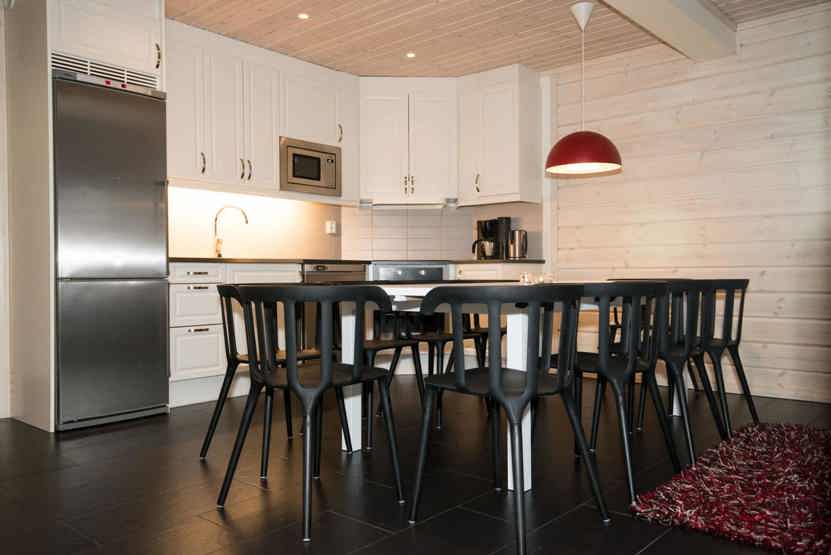 Køkkenet indeholder: keramiske kogeplader med ovn, køleskab, frys, opvaskemaskine, microovn.