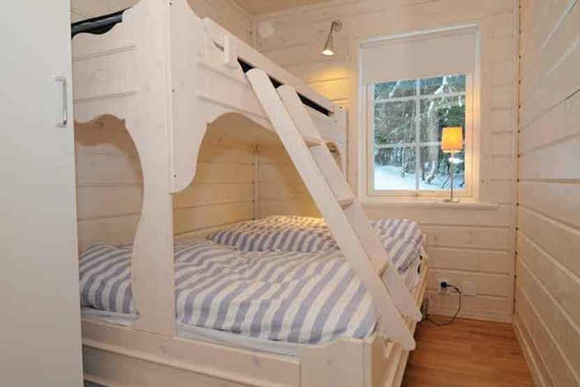 Soveværelse-1= 1 dobbeltseng. Soveværelse-2= 1 køjeseng med 140 cm bred underkøje . Soveværelse-3= 2 køjesenge.