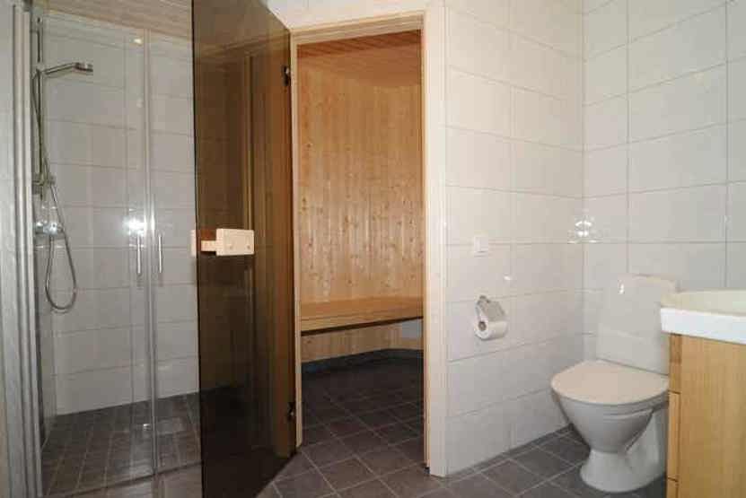 Badeværelset-1 = bruse/wc/sauna. Badeværelset-2 = bruse/wc.