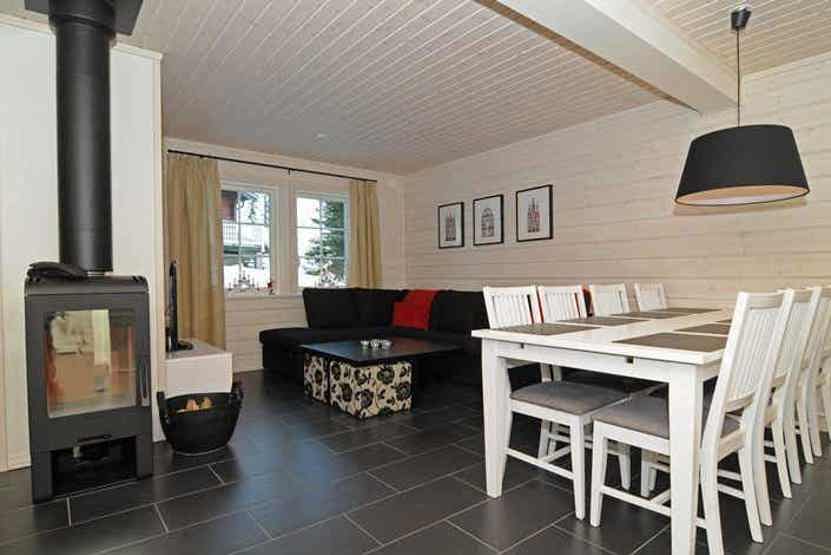 TV, brændeovn (brænde indgår ikke), 1 højstol, 1 barneseng, vaskemaskine, tørretumbler, tørreskab, rum til skiudstyr.
