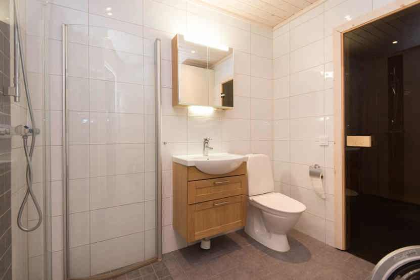 Badeværelset-1 = bruse/wc/sauna. Badeværelset-2 = bruse/wc.