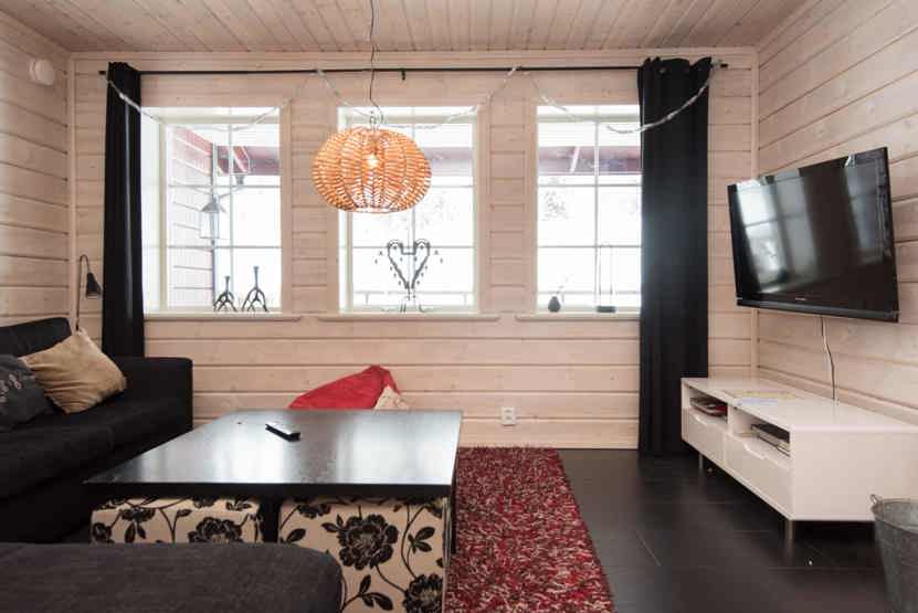 Falkens Radhus ligger i Lindvallen. 1. sals lejlighed, 8 sengepladser, 79 m², alrum med køkkenafdeling, 3 soveværelser, 2 brusere, 2 WC, sauna.