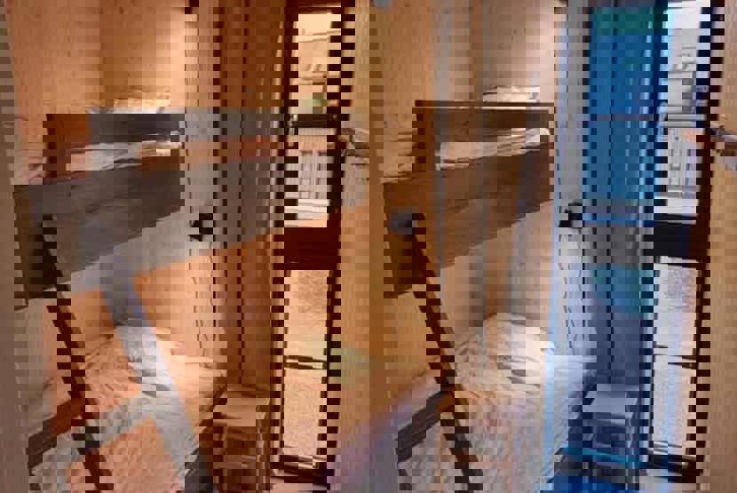 Soveværelse-1= 1 dobbeltseng 180 cm bred. Soveværelse-2= 1 køyeseng med 120 cm bred underkøye og 80 cm bred overkøye.