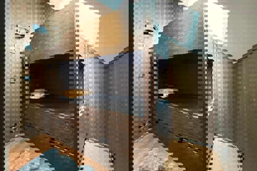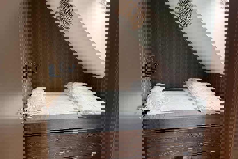 Soveværelse-1= 1 dobbeltseng 160 cm bred. Soveværelse-2= 1 køjeseng hvor både over og underkøje er 90 cm bred.