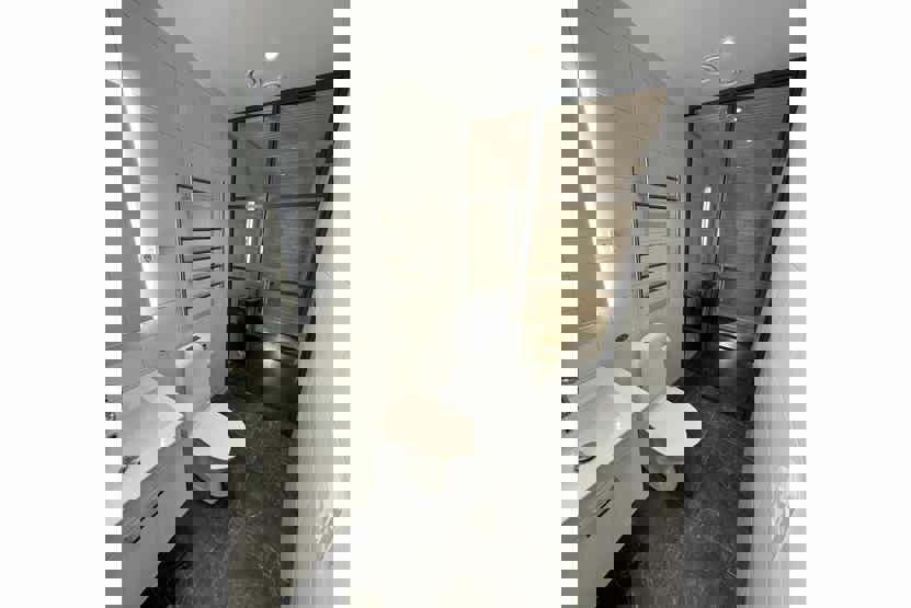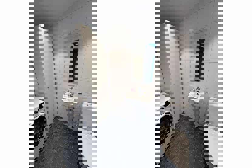 Badeværelset-1 = bruse/wc/sauna. Badeværelset-2 = wc.