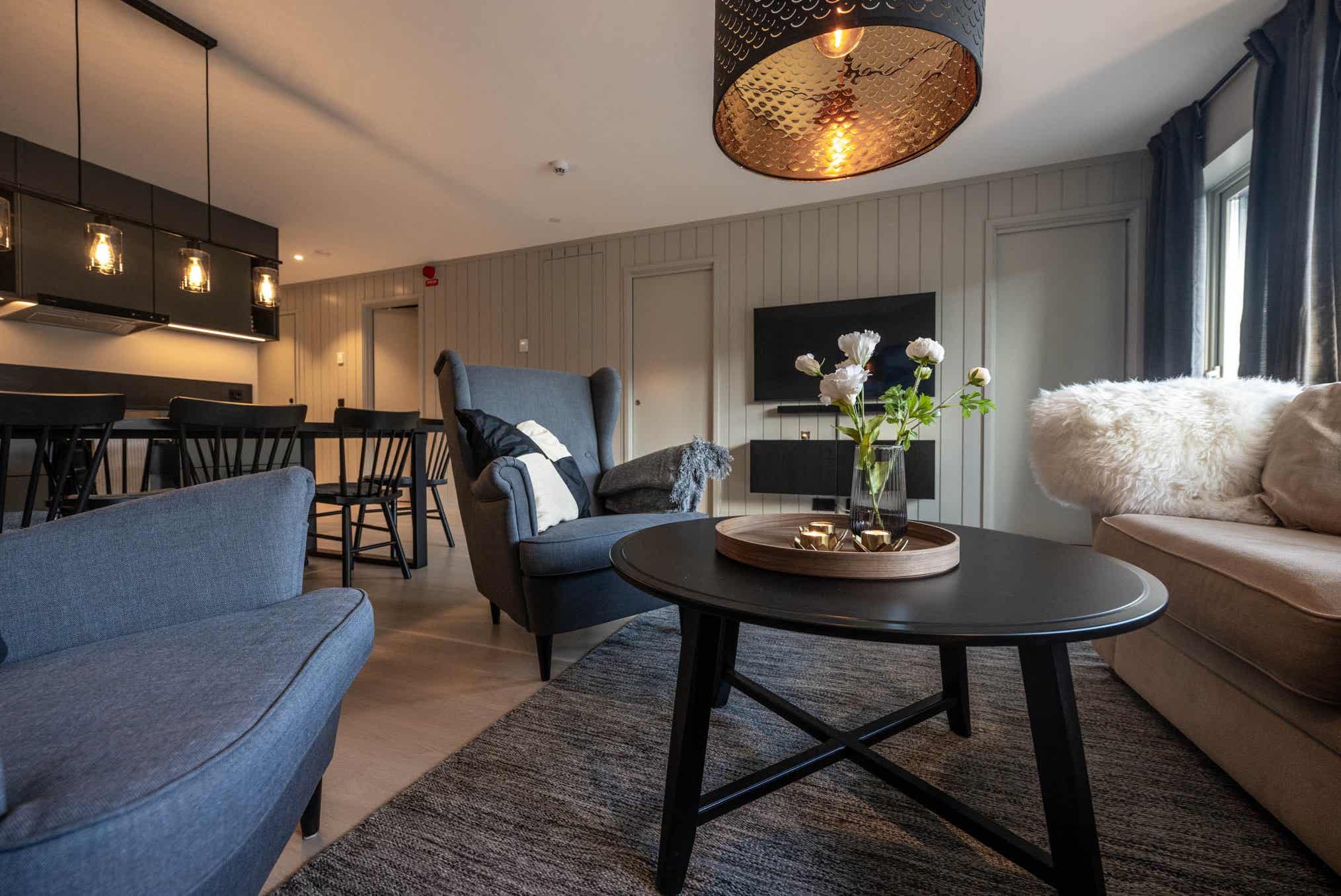 Smarte og hyggelige lejligheder ved Sälfjällstorget i Lindvallen. Der er gåafstand til skiløb, og på torvet er der shopping, skøjtebane og en række restauranter. I den hyggelige lobby er der cykel- og skiopbevaring.