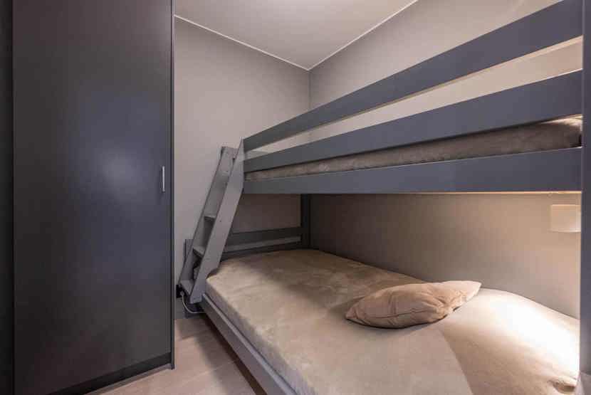 Soveværelse-1= 1 dobbeltseng 160 cm bred. Soveværelse-2= 1 køyeseng med 120 cm bred underkøye og 90 cm bred overkøye.