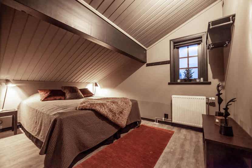 Hems 1= 1 dobbeltseng 160 cm bred, 1 dobbeltseng som kan laves om til to enkeltsenge, 2 * 80 cm, lav lofthøjde, Stejl trappe.
