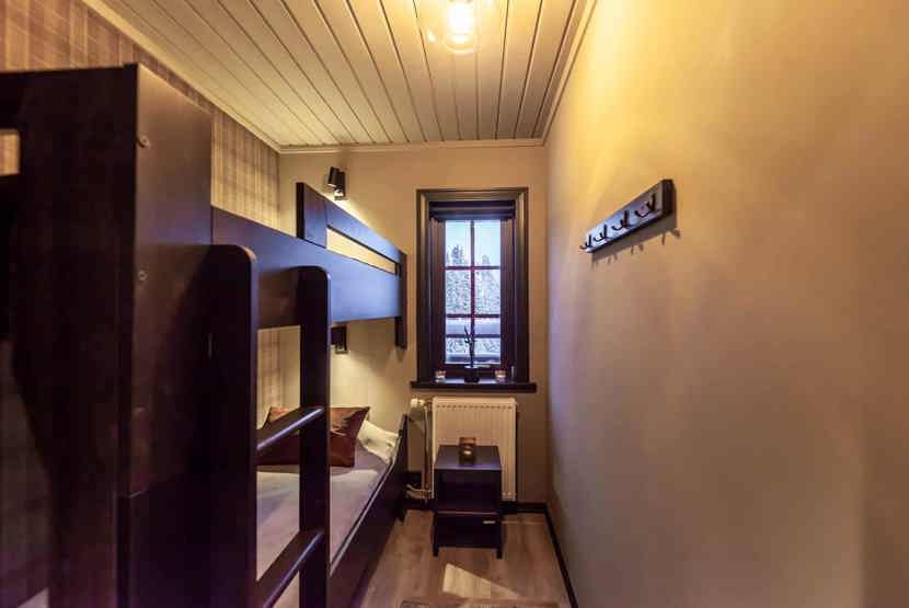 Soveværelse-1= 1 køjeseng 80 cm bred x 200 cm lang. Soveværelse-2= 2 køjesenge.