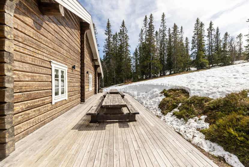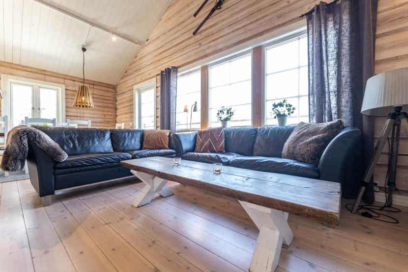 Opholdsstue med køkkenafdeling. TV, brændeovn (brænde indgår ikke), håndklædetørrer, tørreskab, rum til skiudstyr, balkon.