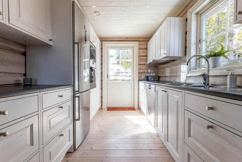 Køkkenet indeholder: keramiske kogeplader med ovn, køleskab, frys, opvaskemaskine, microovn.