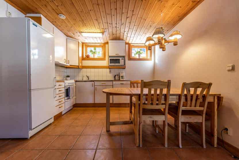 Opholdsstue med køkkenafdeling, 1 køjeseng med 120 cm bred underkøje .