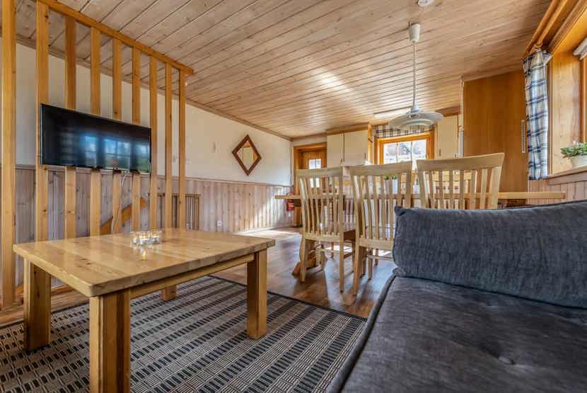 Opholdsstue med køkkenafdeling. TV, tørreskab, rum til skiudstyr, altan (skovles ikke), adgang til elbilopladere med type 2 stik mod betaling.