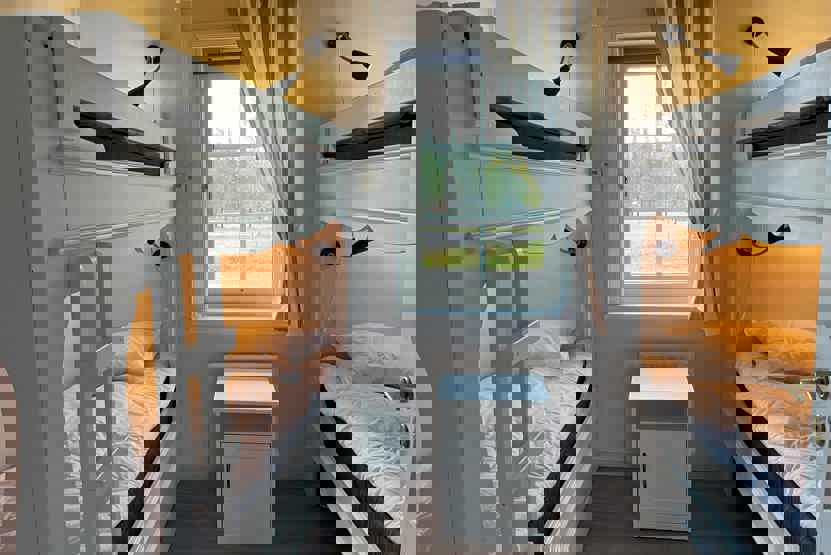 Soveværelse-1= 2 køjesenge hvor både over og underkøje er 80 cm bred.