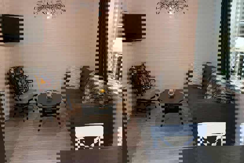 Opholdsstue med køkkenafdeling.