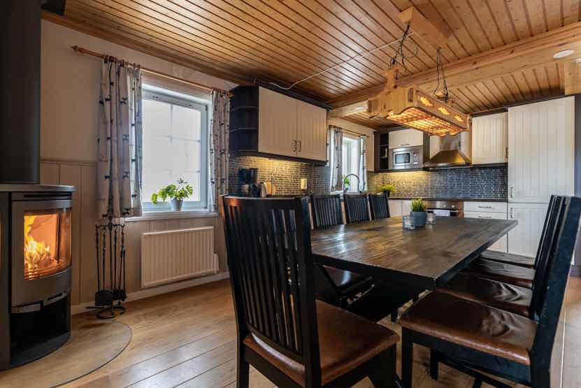 TV, tørreskab, brændeovn (brænde indgår ikke), rum til skiudstyr, balkon, havem¢bler.