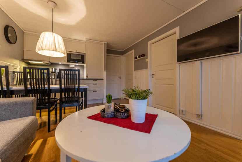 TV, tørreskab, skotører, rum til skiudstyr, altan (skovles ikke), havem¢bler.