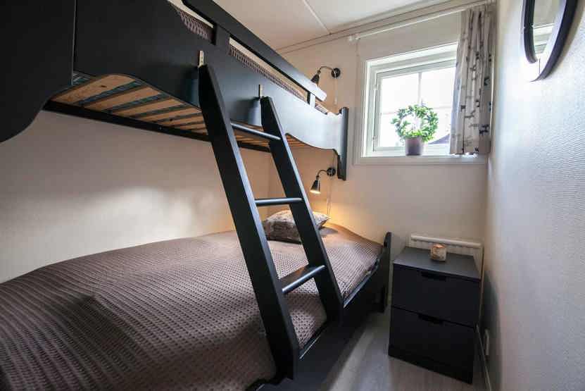 Soveværelse-1= 1 køjeseng, 1 køyeseng med 120 cm bred underkøye og 90 cm bred overkøye. Soveværelse-2= 1 køyeseng med 120 cm bred underkøye og 90 cm bred overkøye.