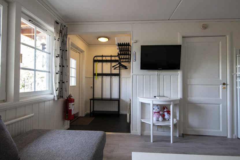 Opholdsstue med køkkenafdeling. TV, tørreskab, rum til skiudstyr, altan (skovles ikke).