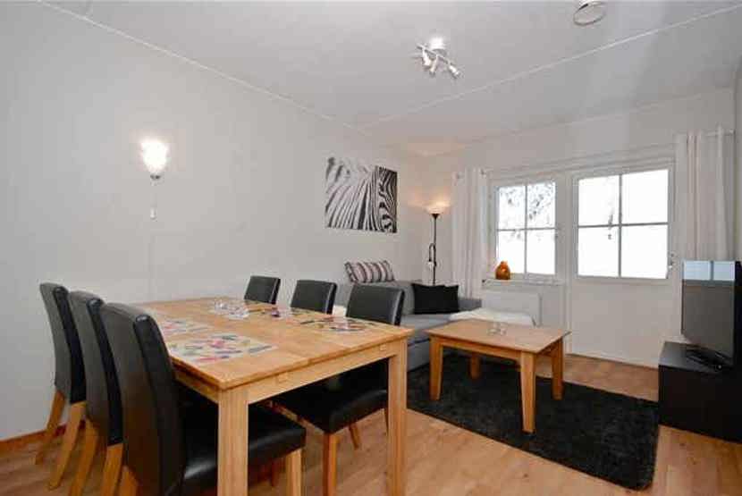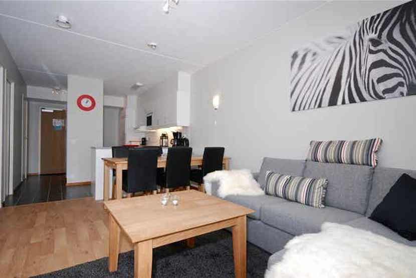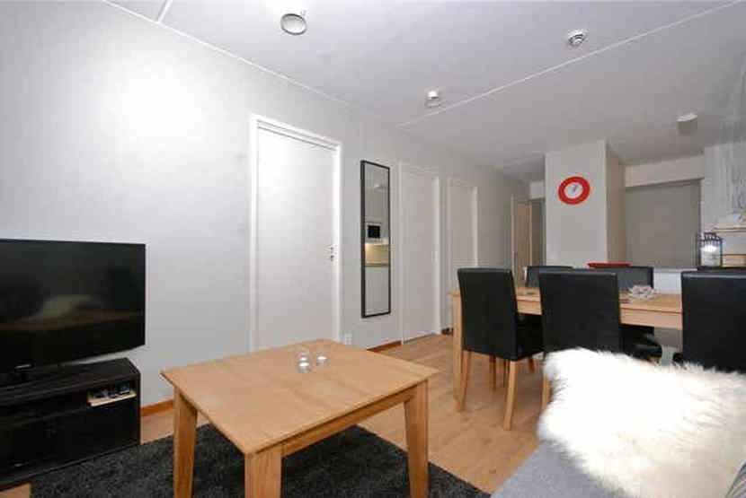Opholdsstue med køkkenafdeling. TV, vaskemaskine, tørreskab, rum til skiudstyr, 1 højstol, 1 barneseng, altan (skovles ikke).