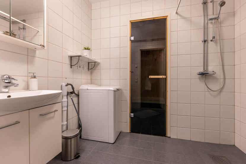 Badeværelset-1 = bruse/wc/sauna. Badeværelset-2 = bruse/wc/håndklædetørrer.