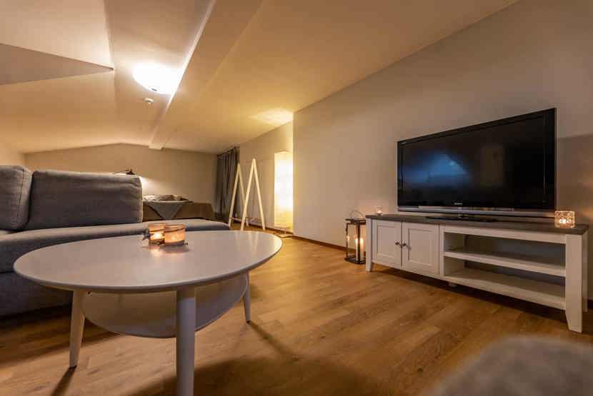 Opholdsstue med køkkenafdeling. TV, vaskemaskine, tørreskab, rum til skiudstyr, balkon, 1 parkeringsplads.
