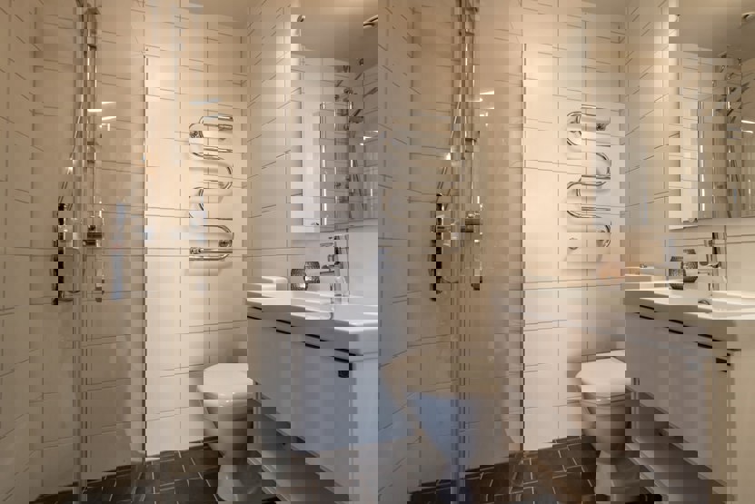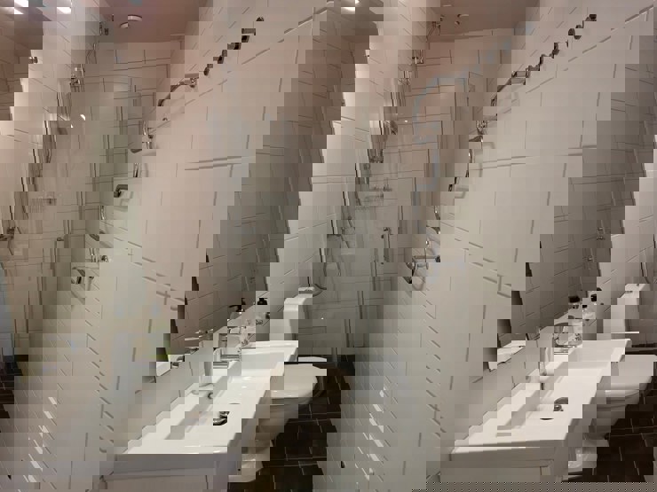 Badeværelset-1 = bruse/wc/sauna. Badeværelset-2 = bruse/wc.