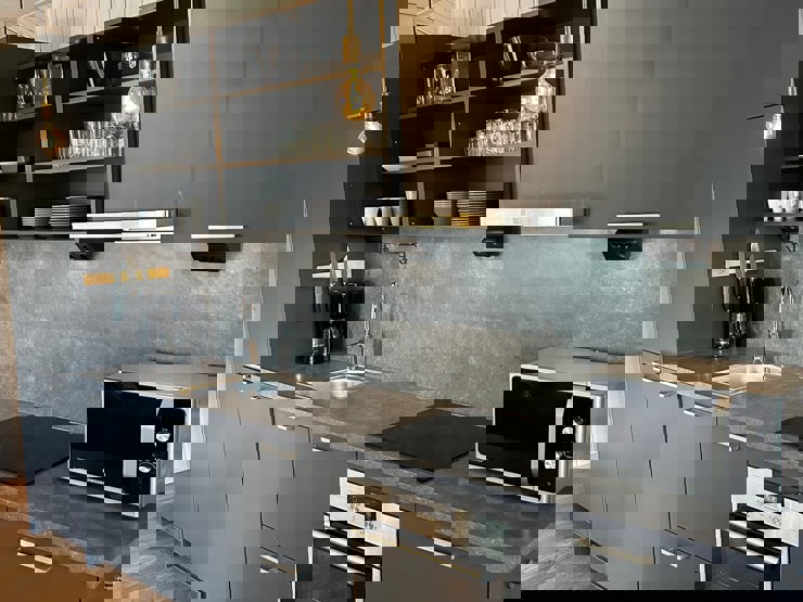 Køkkenet indeholder: keramiske kogeplader, indbygningsovn, køleskab, frys, opvaskemaskine, microovn.