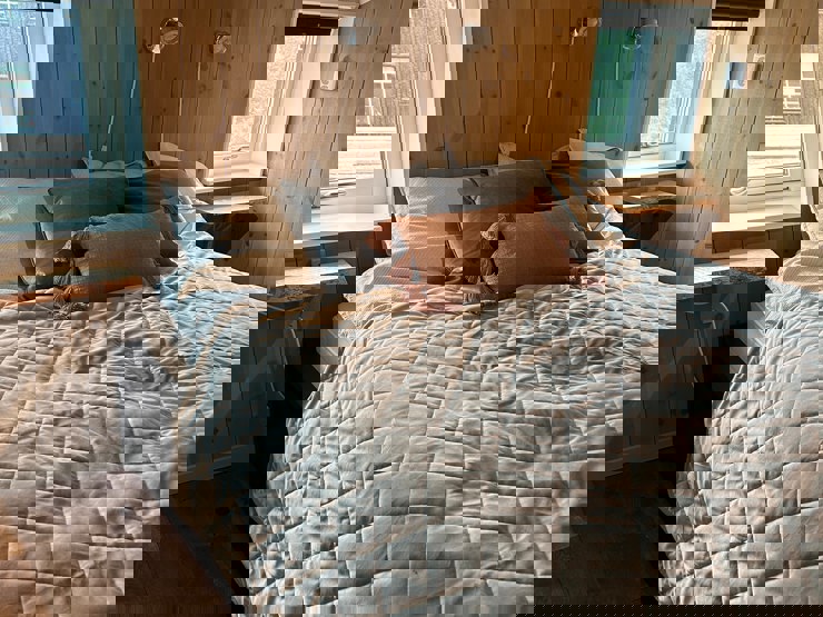 Soveværelse-1= 1 dobbeltseng 160 cm bred. Soveværelse-2= 2 køjesenge 80 cm bred. Soveværelse-3= 1 dobbeltseng 160 cm bred.