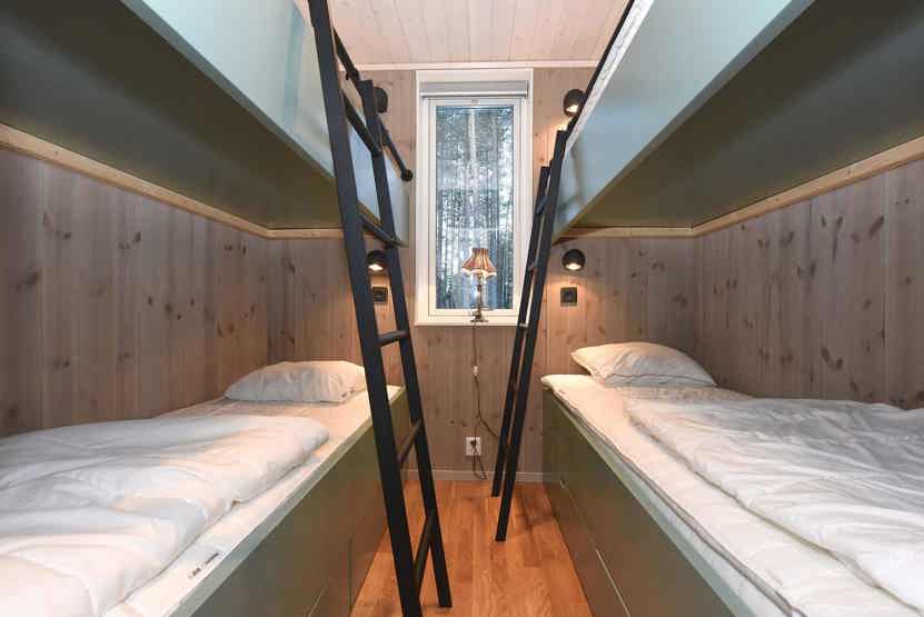 Soveværelse-1= 1 dobbeltseng 160 cm bred. Soveværelse-2= 2 køjesenge 80 cm bred.