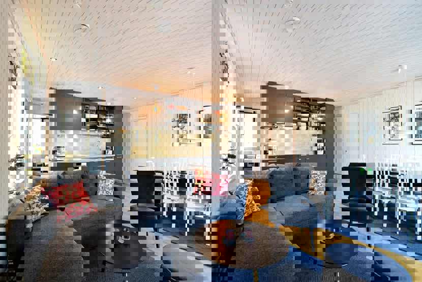 Køkkenet indeholder: keramiske kogeplader, indbygningsovn, køleskab, frys, opvaskemaskine, microovn.
