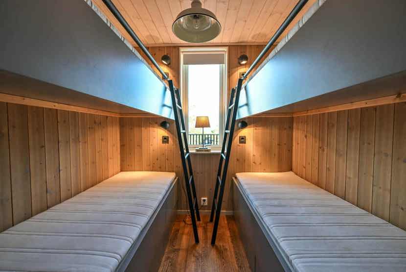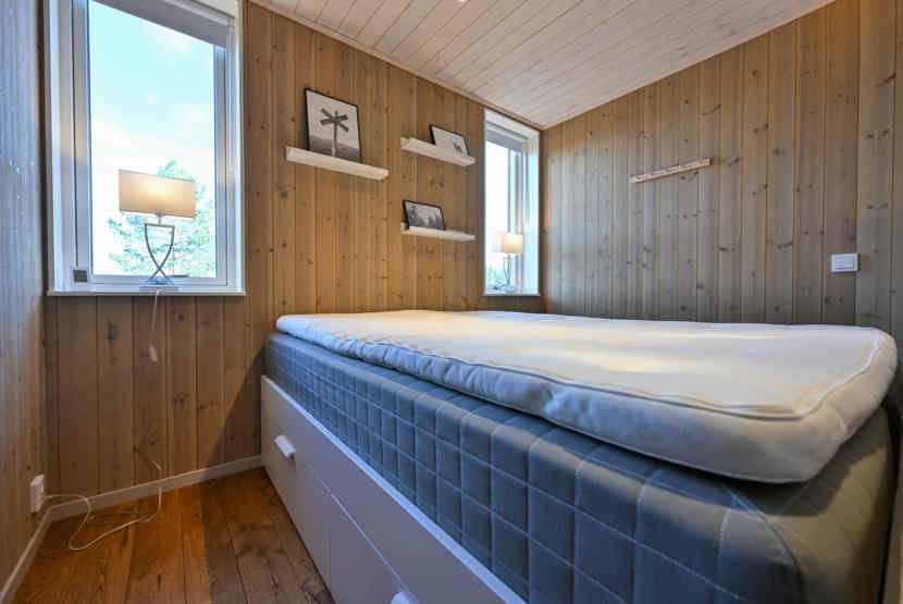Soveværelse-1= 1 dobbeltseng 160 cm bred. Soveværelse-2= 2 køjesenge 80 cm bred.