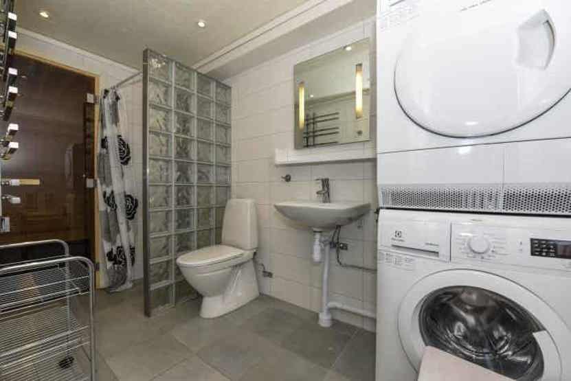 Badeværelset-1 = bruse/wc/sauna. Badeværelset-2 = wc.