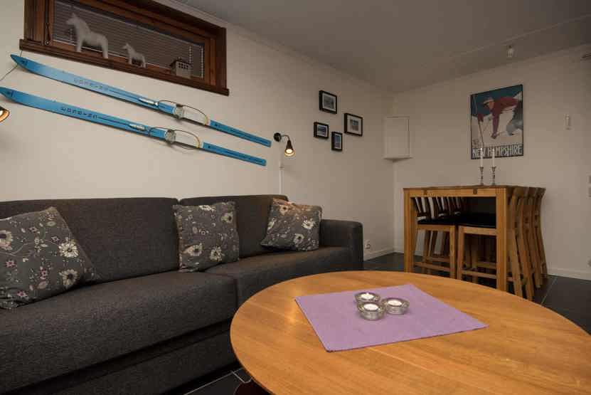 Ekstra info: Opholdsstue med køkkenafdeling, sovesofa til 2 personer. TV, altan (skovles ikke), havemøbler, rum til skiudstyr.