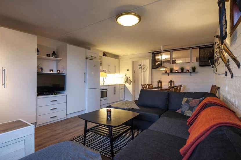 Opholdsstue med køkkenafdeling.