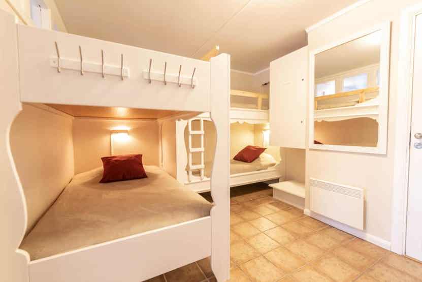 Alkove-1 = 1 køjeseng 110 cm bred, 1 køjeseng 80 cm bred.