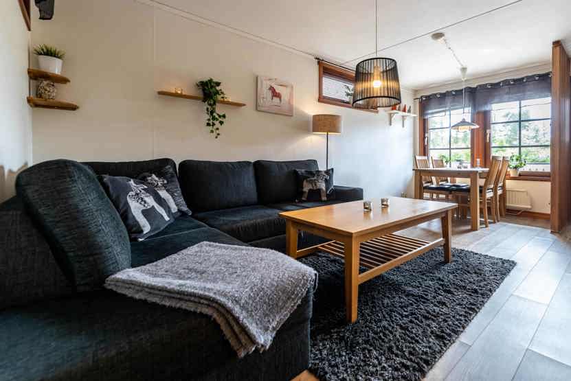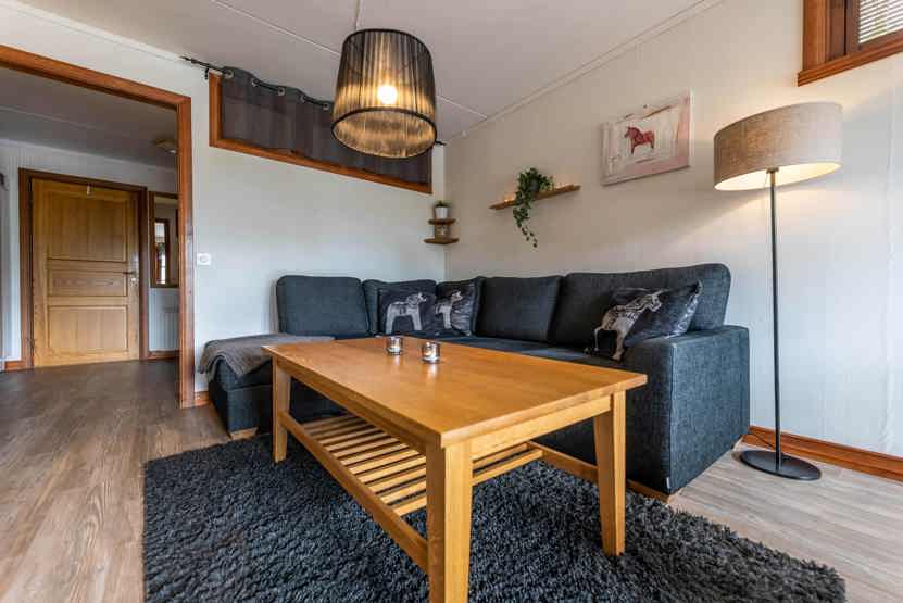 Opholdsstue med køkkenafdeling. TV, tørreskab, rum til skiudstyr, altan (skovles ikke).