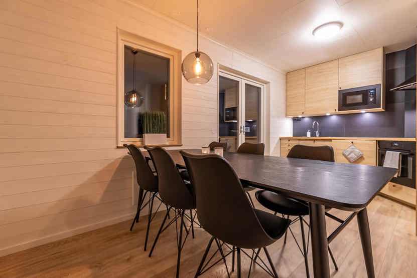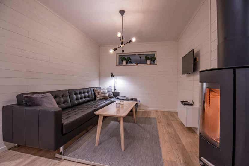 Opholdsstue med køkkenafdeling. TV, brændeovn (brænde indgår ikke), tørreskab, kombineret vaskemaskine/tørretumbler, altan (skovles ikke), rum til skiudstyr, 1 parkeringsplads, adgang til elbilopladere med type 2 stik mod betaling.