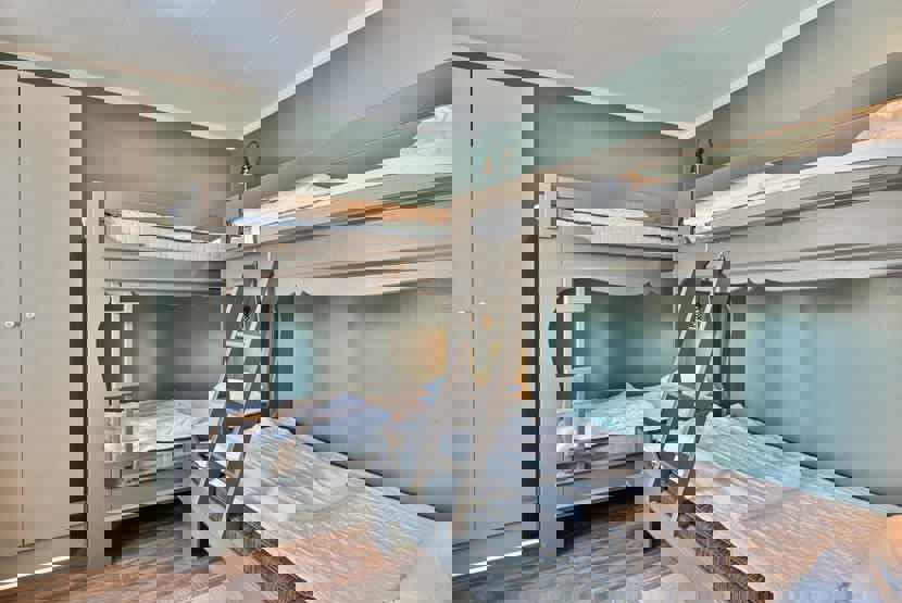 Soveværelse-1= 1 dobbeltseng. Soveværelse-2= 1 køjeseng, 1 køjeseng. Soveværelse-3= 1 køjeseng, 1 køjeseng.