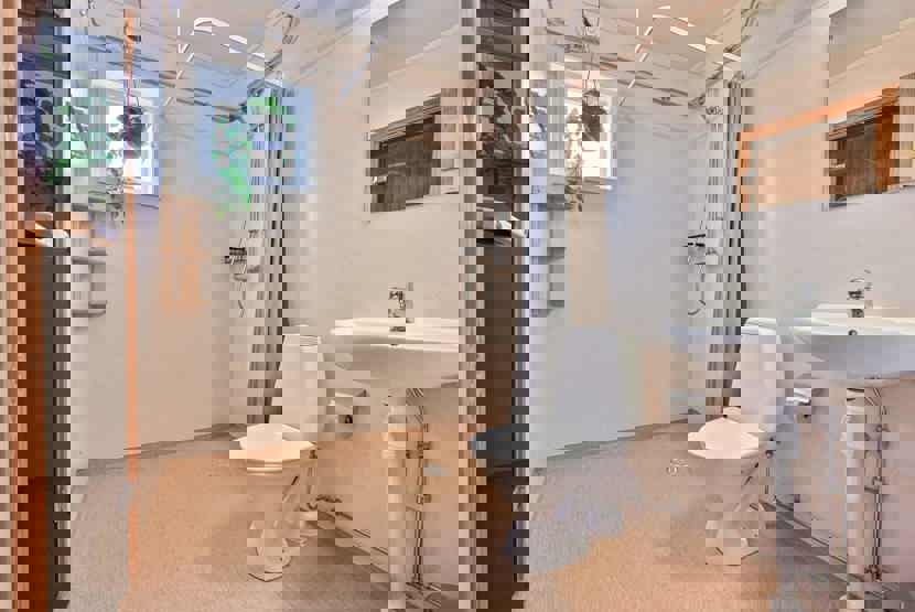 Badeværelset-1 = 1 bruse/wc/sauna. Badeværelset-2 = 1 bruse/wc.