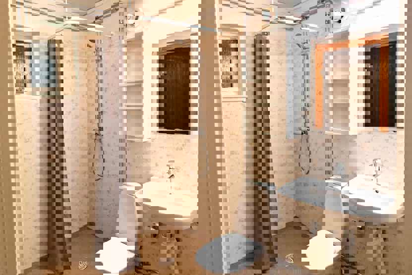 Badeværelset-1 = 1 bruse/wc/sauna. Badeværelset-2 = 1 bruse/wc.
